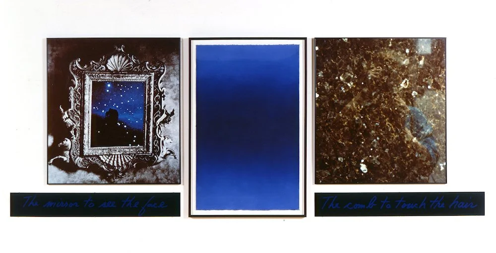 a) A cibachrome from a b/w photograph of an ornate mirror into which a colour image of the horsehead nebula has been dropped.